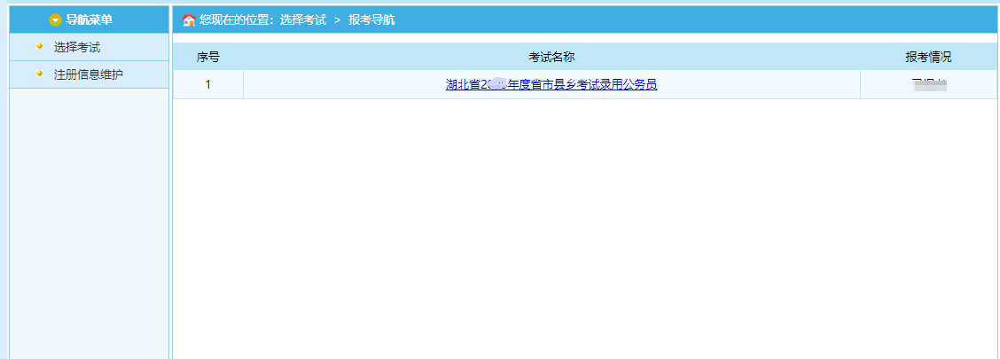 通过点击系统导航菜单中“选择考试”选项可以跳转到选择要报名的考试的页面,如下图所示: