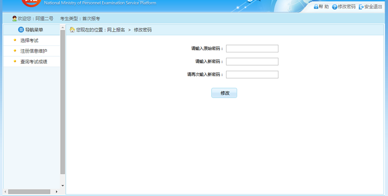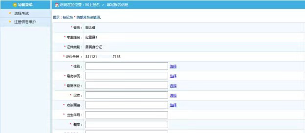 在此页面可以完成对考生个人信息的修改。