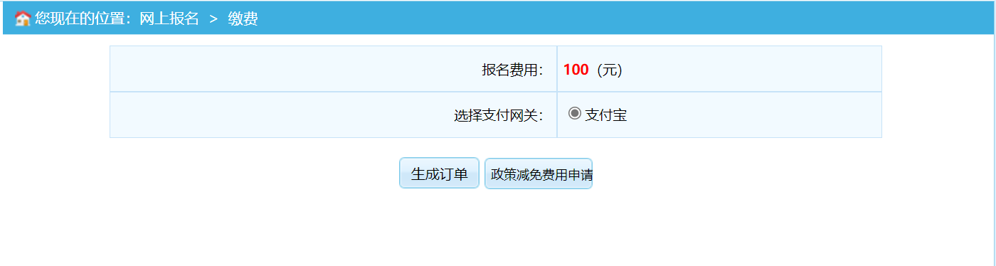 点击“生成订单”进入网上缴费流程。