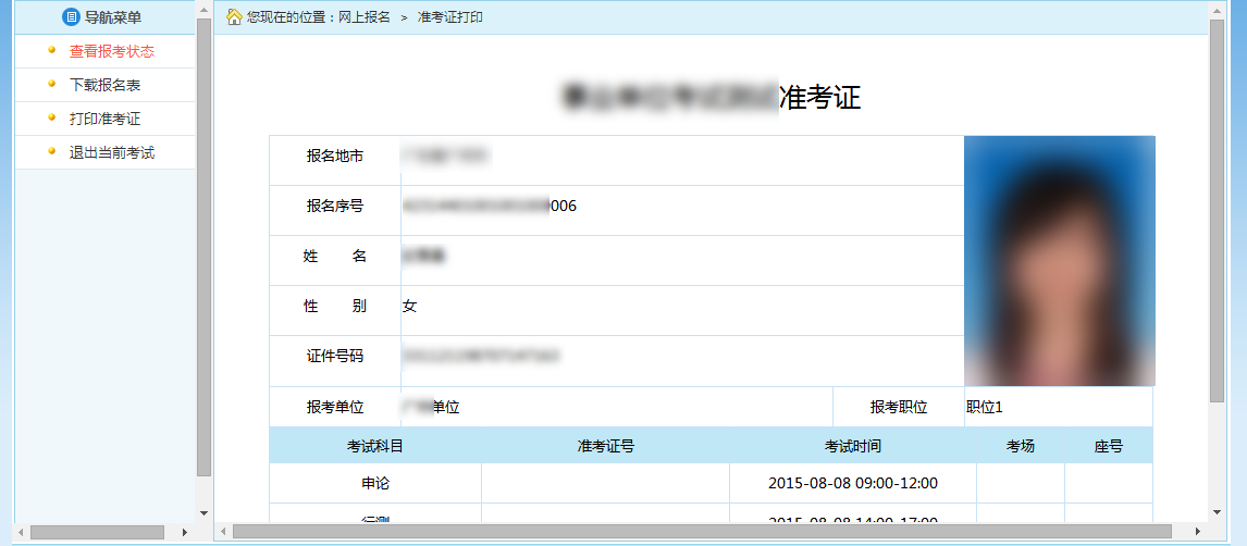 通过点击系统导航菜单的“打印准考证”选项,可进入准考证打印页面,如下图所示:
