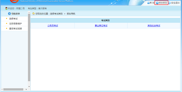 通过点击系统右上角的“修改密码”选项,如下图所示: