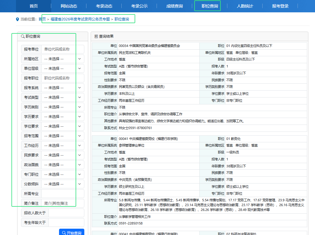 报考专门职位、退役安置专岗、2026年应届生岗位等资格条件可查询《福建省2026年度考试录用公务员报考指南》。